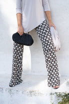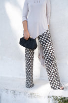 Pantalón tiro alto, cintura engomada, semi campana de nuestro tejido totalmente elastico estampado.
