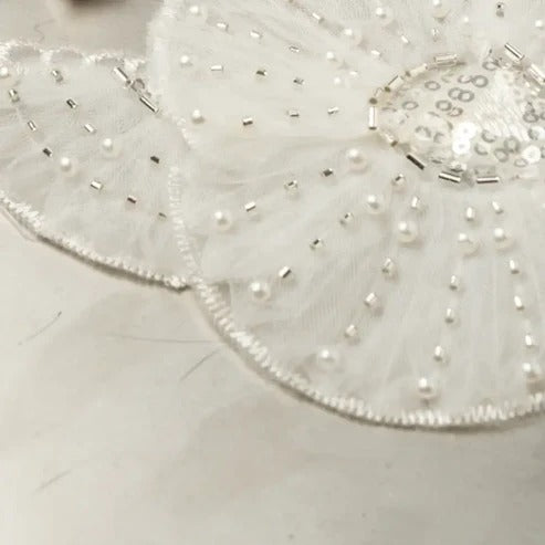Choker with perfectly embroidered circular petals. The clean, contemporary design combines the delicacy of the embroidery with a powerful visual structure, creating a piece with a serene personality.
