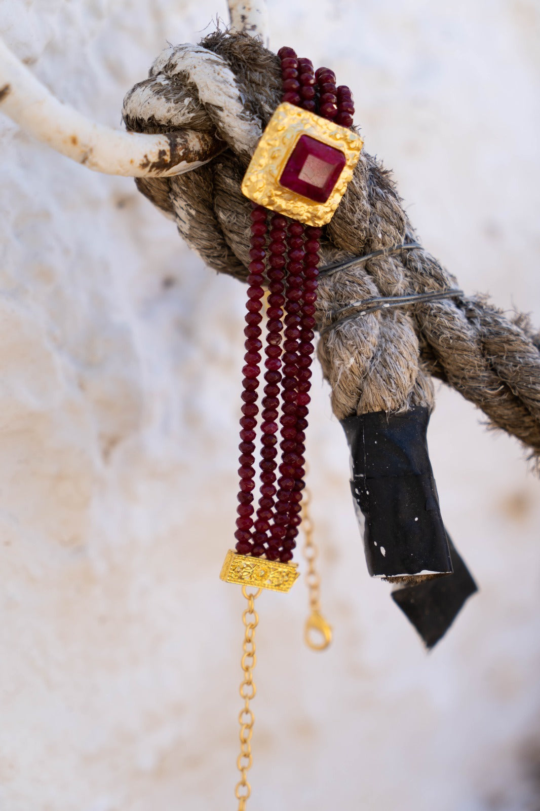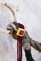 Choker made up of four rows of stones and a square in the center with a large stone, handcrafted piece by piece.