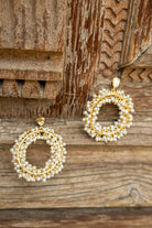 Front hoop earrings formed by a circle surrounded by mini pearls, nut closure