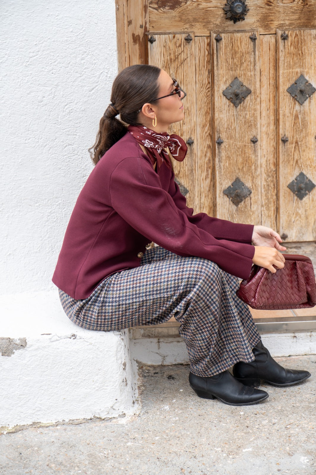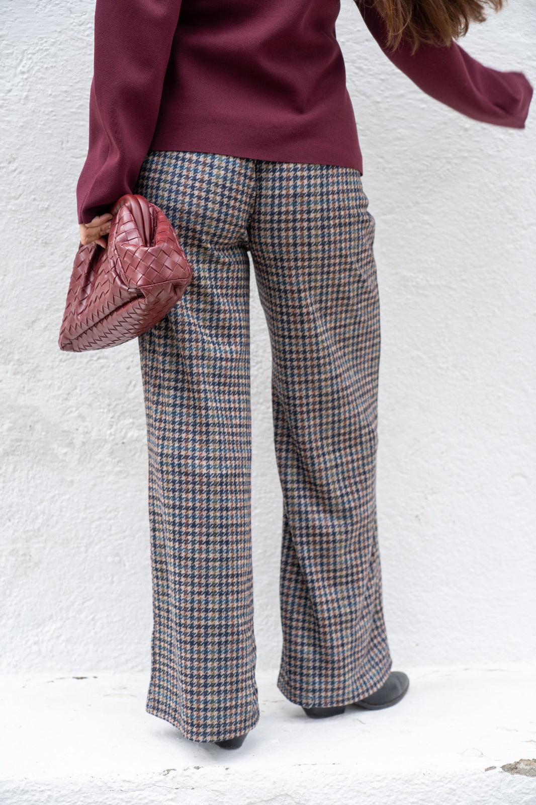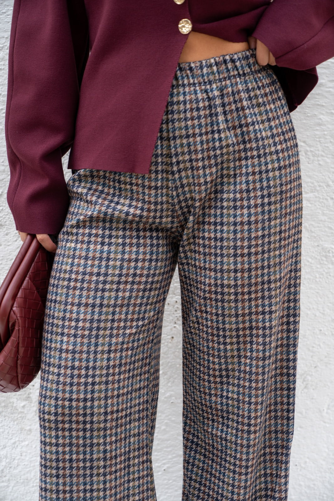 Trousers with elasticated waistband, thick fabric, in multicolored checks.