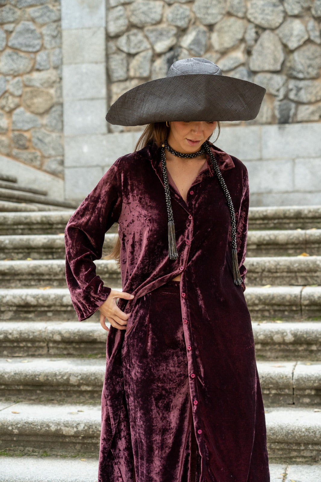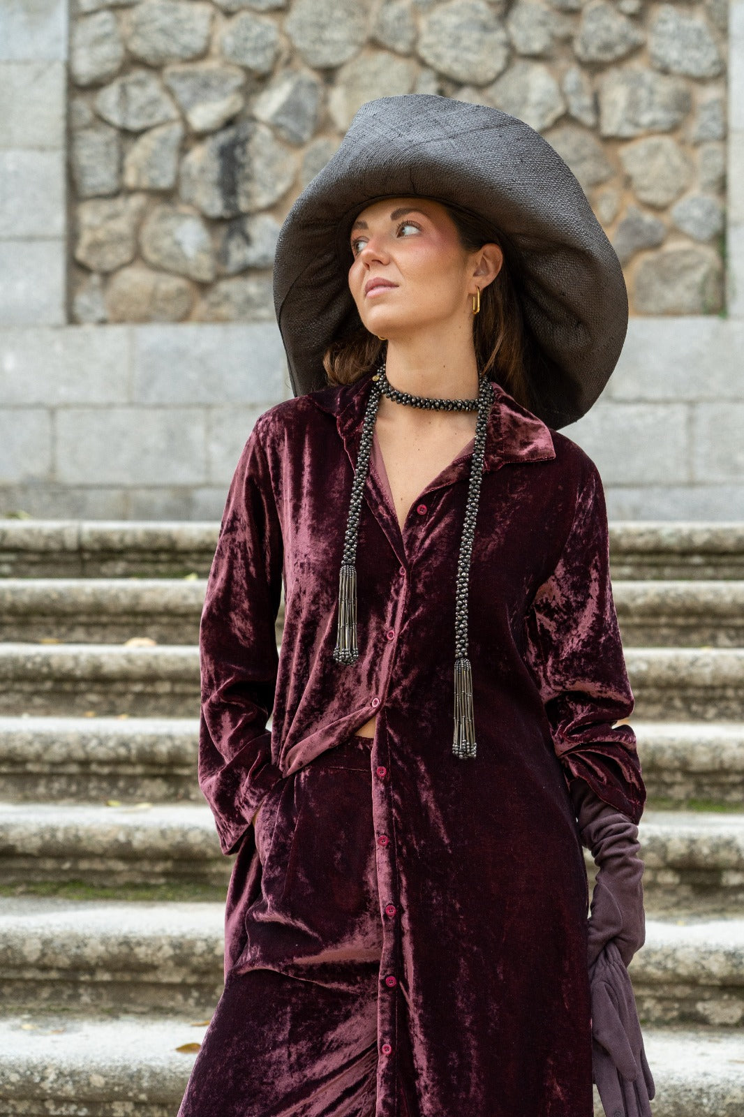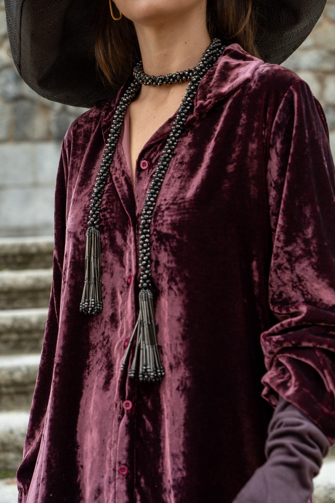 Necklace made up of a small crystal bead in grayish tones, finished with a flexible tassel.
