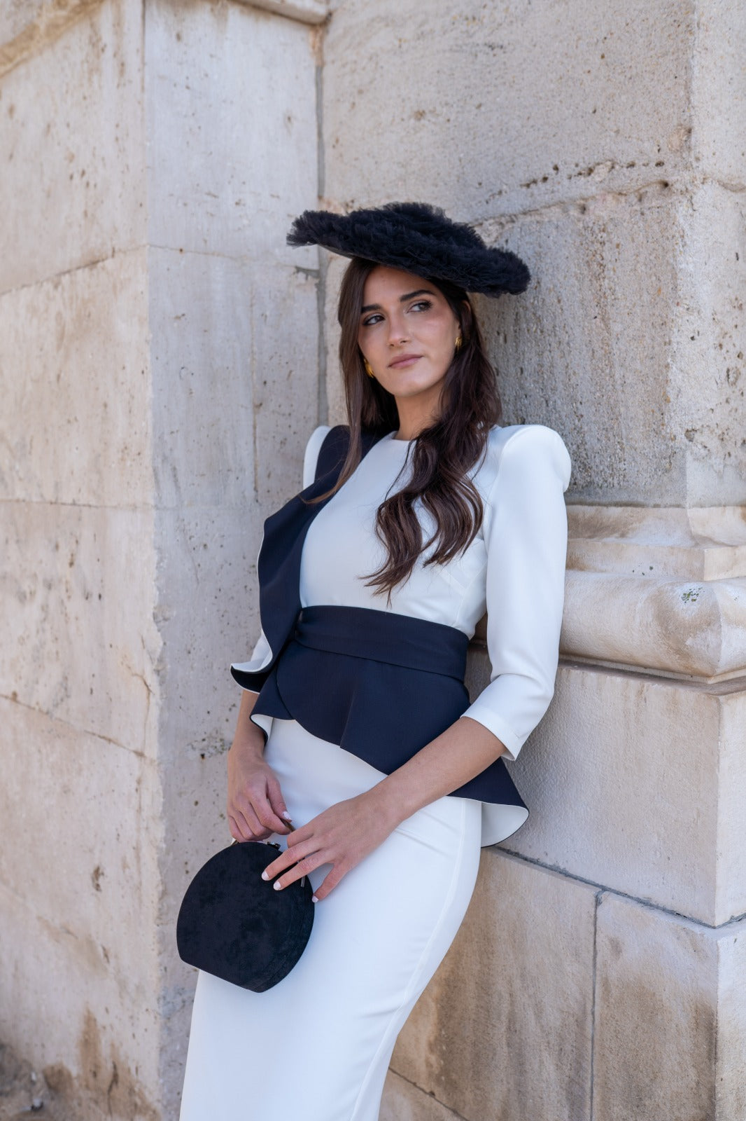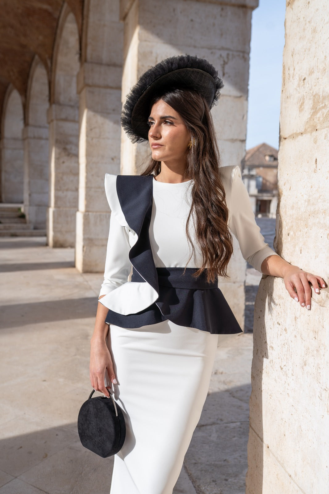 Handbag lined in black satin, rigid handle and silver-colored chain for hanging.