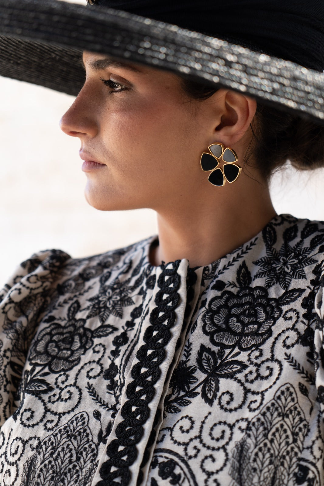 Batres Flower Earrings Black