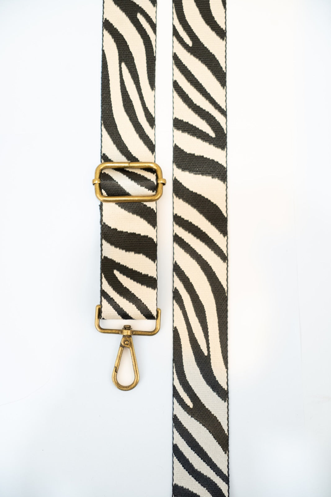Asa bandolera cebra tejida con diferentes estampados en blanco y negro. Combinable con los bolsos Cies y Cotal.