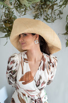 Pamela de fibra natural, teñida a mano de forma artesanal, en color natural, sin diadema.